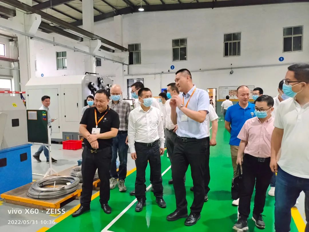 隨后,一行人來到車間,吳縣長對我司新引進(jìn)的智能數(shù)控彈簧機(jī)很感興趣,詳細(xì)地了解了該機(jī)器的功能,并建議我們引進(jìn)更多的高端智能設(shè)備,以促進(jìn)企業(yè)智能自動化流水線的搭建,使生產(chǎn)效率更高,質(zhì)量更穩(wěn)定,效益更好。
