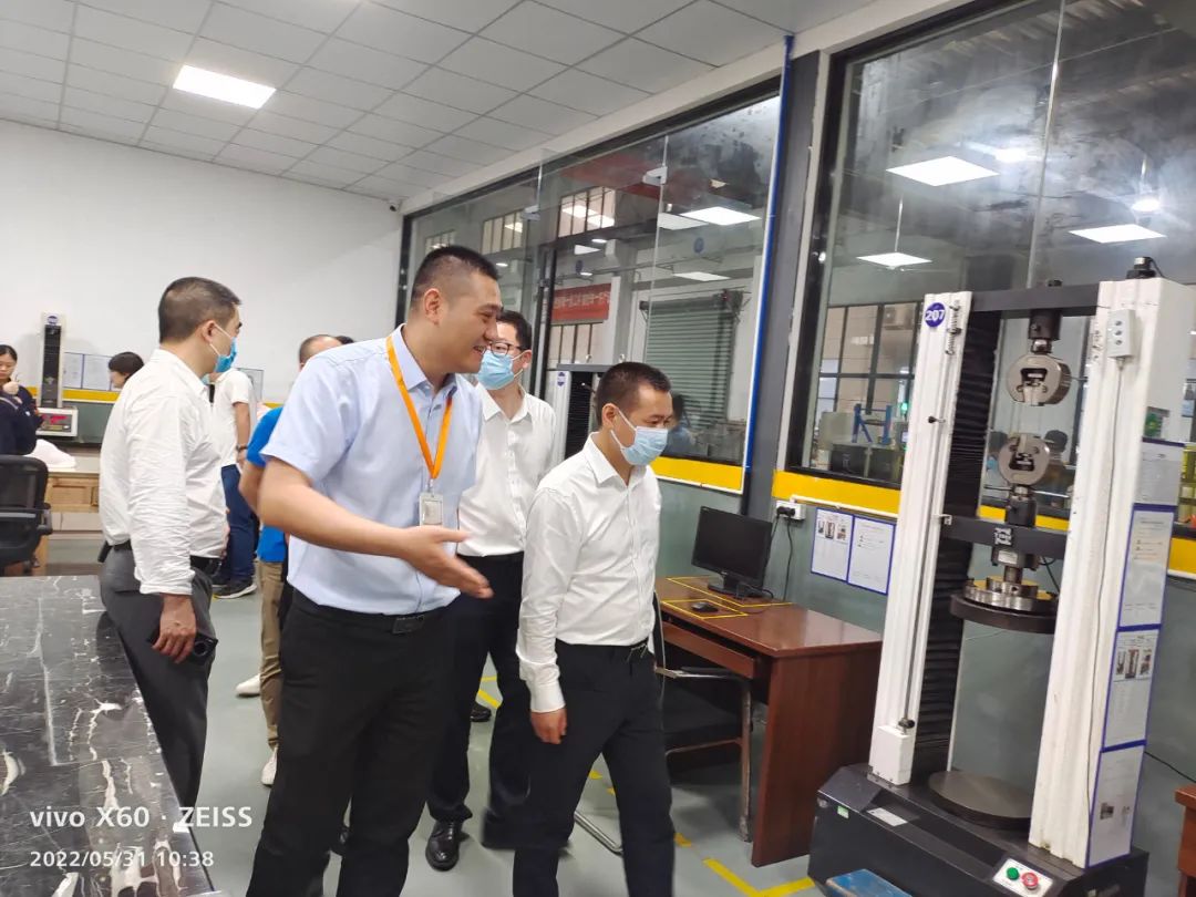 在檢測室,吳縣長參觀了材料的檢測設(shè)備、彈簧的特性檢測設(shè)備以及疲勞檢測設(shè)備,同時(shí)鼓勵我們多做測試,積累數(shù)據(jù),了解并掌握材料在制作和使用中的力學(xué)分布情況,讓彈簧的性能達(dá)到極致。